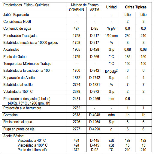 Grasa elaborada a base de jabón de litio y aceites básicos refinados. Entre las características principales de esta grasa se destacan: buena bombeabilidad, resistencia al barrido y arrastre por agua, buena estabilidad mecánica y resistencia a la oxidación; también propiedades de protección contra la formación de herrumbre y corrosión. Excede con los requisitos mínimos establecidos en la norma venezolana COVENIN 967/3 para grasas de servicio múltiple, que se utilizan en el campo automotor e industrial. Este producto posee el sello de calidad NORVEN.