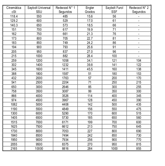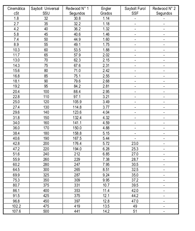 Equivalencia Entre Viscosidad Medidas A Una Misma Temperatura.
